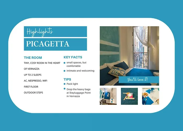 El hotel Picagetta Tiny Room With Ac Vernazza, de 3 estrellas, ofrece rápido acceso a la Chiesa di Santa Margherita di Antiochia, situada a unos 5 minutos a pie. Con un restaurante y depósito de equipajes, la pensión se encuentra a 150 metros de la Playa de Vernazza.